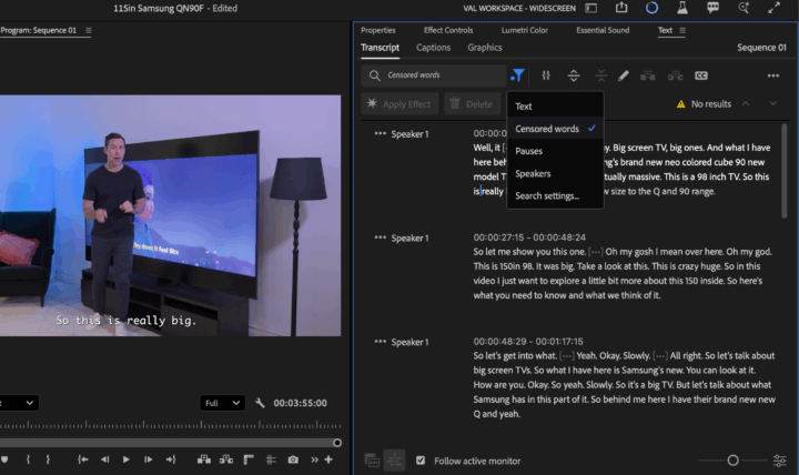 You can now search for specific words and censor them automatically. This is an addition to the audio-transcription system, making it possible to bleep out profanity, names, brands or anything sensitive. You select a replacement sound like a beep, quack or dog bark, or bring in your own.