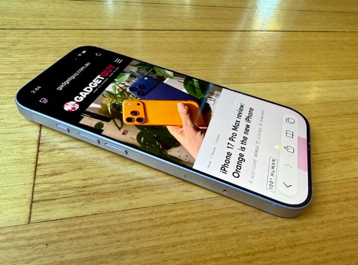 Most people will be pleased to see that Apple has retained support for physical SIM cards in Australia, as it moves some devices to eSIM-only (including US iPhones). When upgrading from an old iPhone, the iPhone 17’s setup process tries to convince you to transfer the details from your old physical SIM to the new phone’s eSIM (which received a hard pass from me).