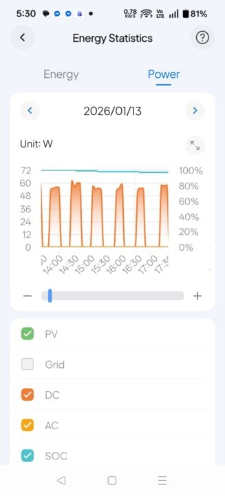 I was originally running Starlink on AC power, consuming 100W per hour. If I wanted Starlink to run from 6 AM to 10 PM, that would be 1,600Wh. Previously, my measurement of this and the solar input to my Bluetti AC200Max was a bit of a guess, as there was no logging functionality. Now with the Elite 300, I can better manage my power usage hour by hour and understand how much solar or vehicle charging I get in a day.