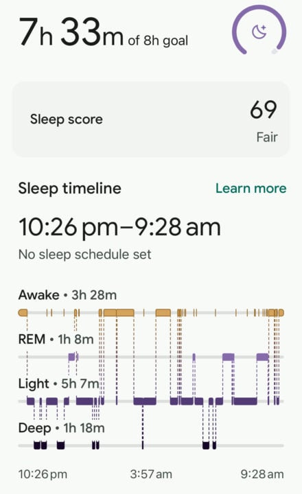 Thanks to AI, the Watch 4 is 18% more accurate at analysing your entire sleep cycle, but it’s still not perfect. For example, it can still mistake stillness for sleep, like at 3:57 AM, when I was actually sitting in bed reading because I couldn’t sleep.