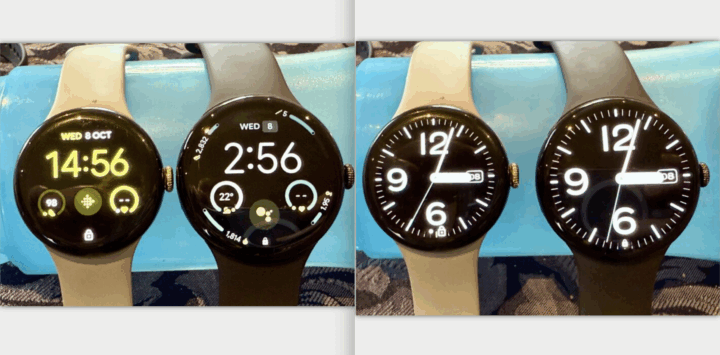 The photos below are of a 45 mm Pixel Watch 4 (with the dark band) alongside last year’s 41 mm Pixel Watch 3 (with the light band). It’s not exactly a like-for-like comparison due to the size difference, but you can see from the side-on view that the bulge of the Watch 4’s dome is barely noticeable – considering that both are only 12.3 mm thick.