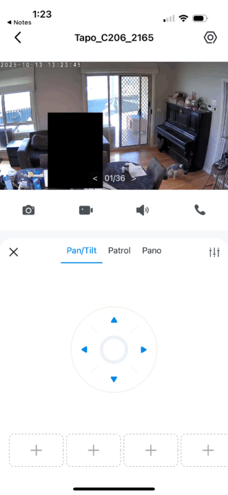 Firstly, unlike some pan-tilt cameras, the Tapo C206 doesn’t automatically re-centre when not in use. So if you accidentally leave it facing off to the side, you’ll miss what’s happening in the middle of the room.