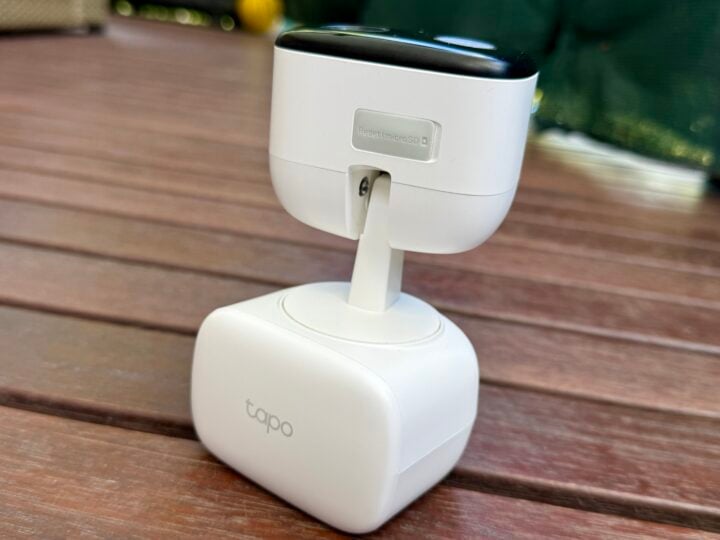 Once you get past the excessive cuteness, your next assumption might be that the base features a built-in battery, but you’d be wrong. The camera only runs on AC power via the rear USB-C port, with Tapo including a 2-metre cable and USB power adaptor.